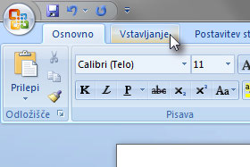 Kliknite na zavihek Vstavljanje.
