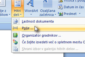 ... in izberite Polje ...