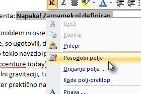 Pritisnite tipko F9, da osvežite polje. Če bo še naprej Word prikazoval napako, potem imate mogoče izključene makre ali pa nimate na računalniku dovolj pravic. |