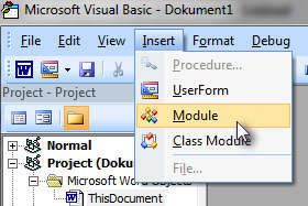 Pritisnite tipki Alt + F11 in v novem oknu kliknite na Insert in izberite Module. |