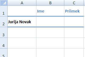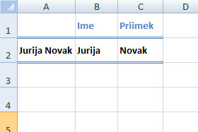 ![]() Excel nam je prikazal ime in priimek ločeno. |