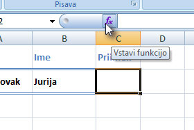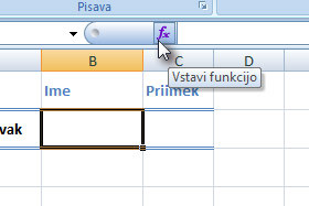 ![]() Sedaj označite celico, kjer bomo prikazali priimek in kliknite na Vstavi funkcijo. |