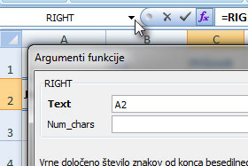 ![]() Ponovno se nahajate v funkciji RIGHT, kjer označite polje Num_chars. |