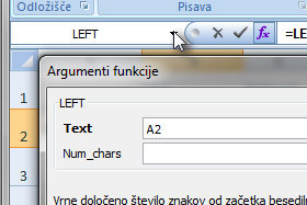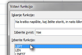 ![]() Odpre se novo okno, kjer določite zvrst Vse in nato označite funkcijo LEFT. |