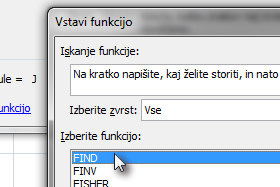 ![]() Odpre se novo okno, kjer določite zvrst Vse in nato označite funkcijo FIND. |