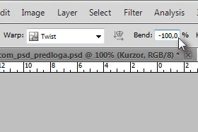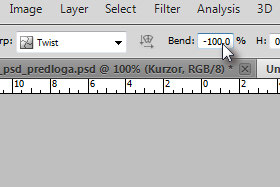 Zgoraj v orodni vrstici Warp preko izbirnika določite Twist in bend določite -100% (glej sliko).