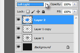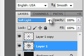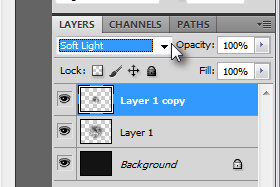 Potem označite spodnji layer in določite tudi njemu senčenje na Soft Light.