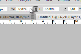 Potem pa v orodni vrstici določite W in H na okoli 82% (glej sliko). |