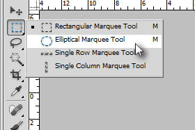 Držite z miško na orodju Rectangular Marquee Tool (bližnjica je tipka M) toliko časa dokler se ne prikaže ostala orodja. |