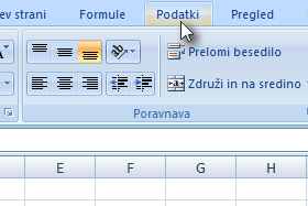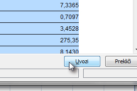 S tem ste označili tabelo, katero boste uvozili v razpredelnico.