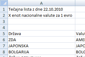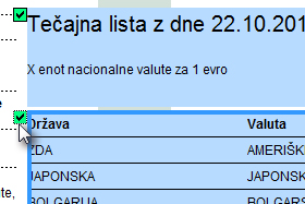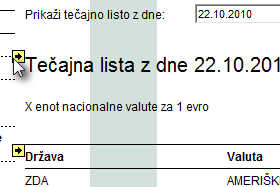 V tej lekciji bomo vozili datum in valute tečajne liste. Kliknite na rumeni kvadratek z puščico pri tečajni listi. |
