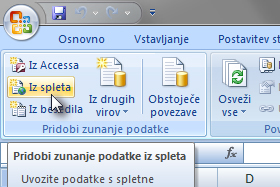 Potem pa v polju Pridobi zunanje podatke kliknite na Iz spleta.