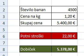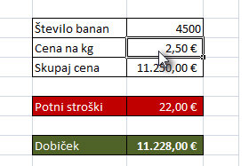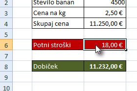 ![]() Potem pa kliknite v celico, kjer je cena na kg in jo spremenite na višjo ceno, tako da boste dobiček povečali. |