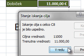 ![]() Odpre se novo okno, kjer v polje Vrednost celice določimo celico z dobičkom. |