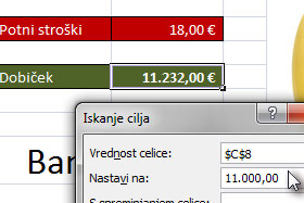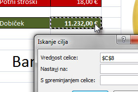 ![]() Spremenite še potne stroške in poizkusite celico z dobičkom nastaviti na 11.000 evrov. |