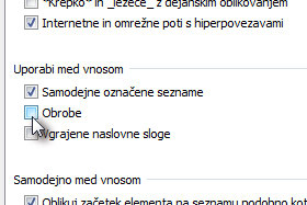 Potem pa izklopite oziroma odznačite Obrobe pri polju Uporabi med vnosom.