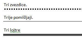 Napišite sedaj drugo besedilo in spodaj tri pomišljaje (glej sliko). |