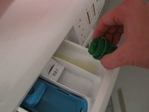 Mehčalec dodajte sedaj v pravilni del posodice za prašek.