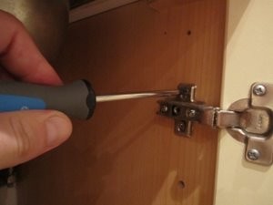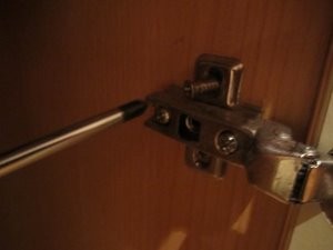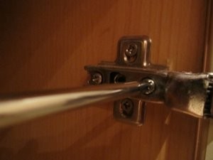 V mojem primeru se mi zgornji vijak s časom zrahlja in se mi vrata omare ponovno ne zapirajo dobro. Zato ga bom odvil. |