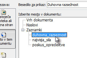 ![]() Kliknite sedaj na mesto, kjer želite dodati prvi zaznamek. |