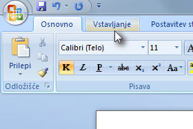 ![]() Kliknite na tablico Vstavljanje. |