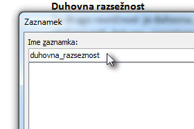 ![]() Odpre se novo okno, kjer vpišete poljubno ime za zaznamek. |