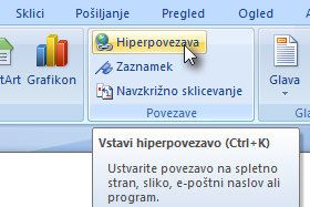 ![]() Kliknite na gumb Hiperpovezava. |