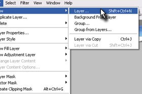 Kreirali bomo nov Layer. Kliknite na Layer, New in izberite Layer...
