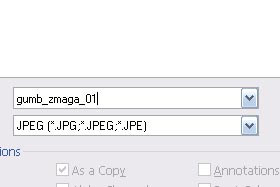 Imenujte sliko gumb_poljubno_01 in spodaj izberite JPEG. Kliknite še na gumb Save in ko vas vpraša za kvaliteto slike, določite 8 (High) in potrdite na OK. |