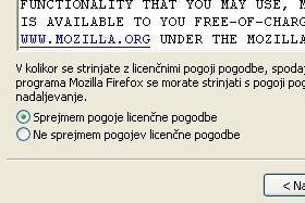 Označite Sprejmem pogoje licenčne pogodbe in kliknite na gumb Naprej.