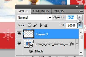 ![]() V paleti layerjev lahko poljubnim snežinkam zmanjšate vrednost Opacity, da bo vse skupaj lepše izgledalo. |