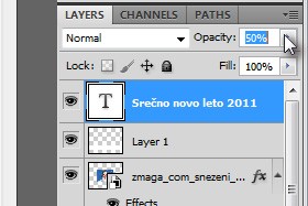 ![]() Tekstovnemu layerju določite Opacity na okoli 50% (glej sliko). |