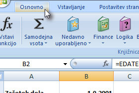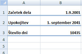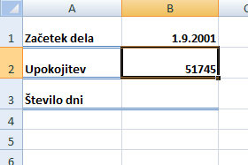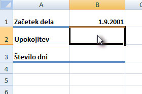 Napišite v razpredelnico datum začetka dela (glej sliko).