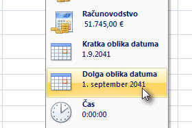 ![]() Sedaj bomo celico oblikovali kot datum. |