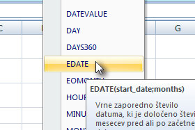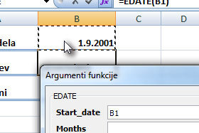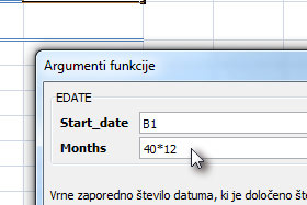 ![]() Odpre se okno z argumenti funkcije, kjer za polje Start_date označite celico z datumom začetka dela. |