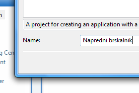 Najprej naredimo nov projekt, ki ga poimenujemo.