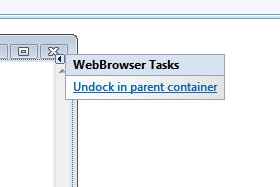 Dodamo webbrowser in v kotu kliknemo trikotnik ter "Undock in parent container".
