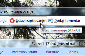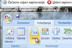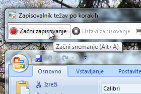 Preden začnete z zapisovanjem, odprite nek program, kjer želite prikazati nekaj, potem pa kliknite na gumb Začni zapisovanje. Jaz bom v programu Excel prikazal, kako se vstavi sliko. |