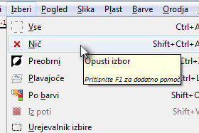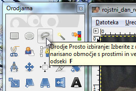 Potem pa v programu izberite orodje Prosto izbiranje (bližnjica je tipka F).