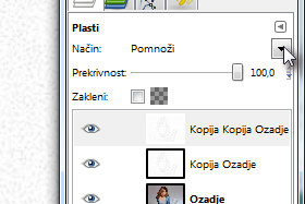 Če se vam zdi presvetla slika, potem ponovno združite plast s spodnjo, jo ponovno podvojite in nato način nastavite na Pomnoži (glej sliko).
