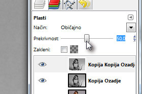 Zgornji plasti določite Prekrivnost na 50 (glej sliko).