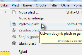 ![]() Kliknite nato na Plast in izberite Podvoji plast. |