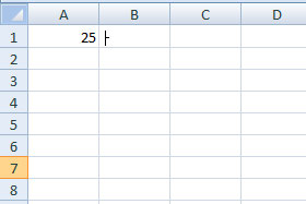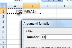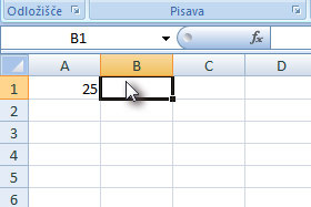 Potem pa v eno celico vpišite število 25 in nato označite celico, kjer želite prikazati poseben znak (glej sliko).