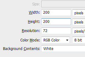 V novem oknu nastavite Width in Height na 200 pixels in Background Contents nastavite White.