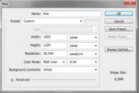 Najprej ustvarimo dokument z dimenzijami 1920 x 1200.
