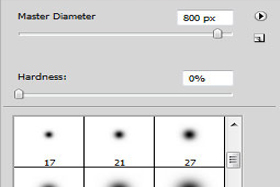![]() Ustvarite nov layer. Sedaj pa z čopičem (B) (nastavitve čopiča so na sliki) ustvarite na sredini slike piko. |