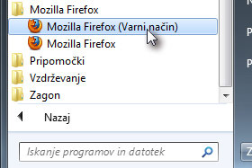 ..., izbral Vsi programi, Mozilla Firefox in nato Mozilla Firefox (Varni način).