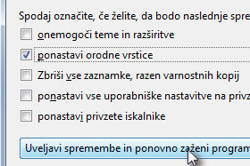 Jaz sem izbral ponastavi orodne vrstice in kliknite na gumb Uveljavi spremembe in ponovno zaženi program.