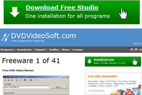 Pojdite na uradno spletno stran programa in kliknite na zelen gumb Download Free Studio, če želite namestiti celoten paket programov ali pa prenesite samo program za zapis DVD filmov - Free DVD Video Burner.