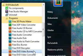 Če ste namestili samo Free DVD Video Burner oz. želite kar direktno odpreti le tega pojdite: Start/Vsi programi/DVDVideoSoft/Programs/Free DVD Video Burner.